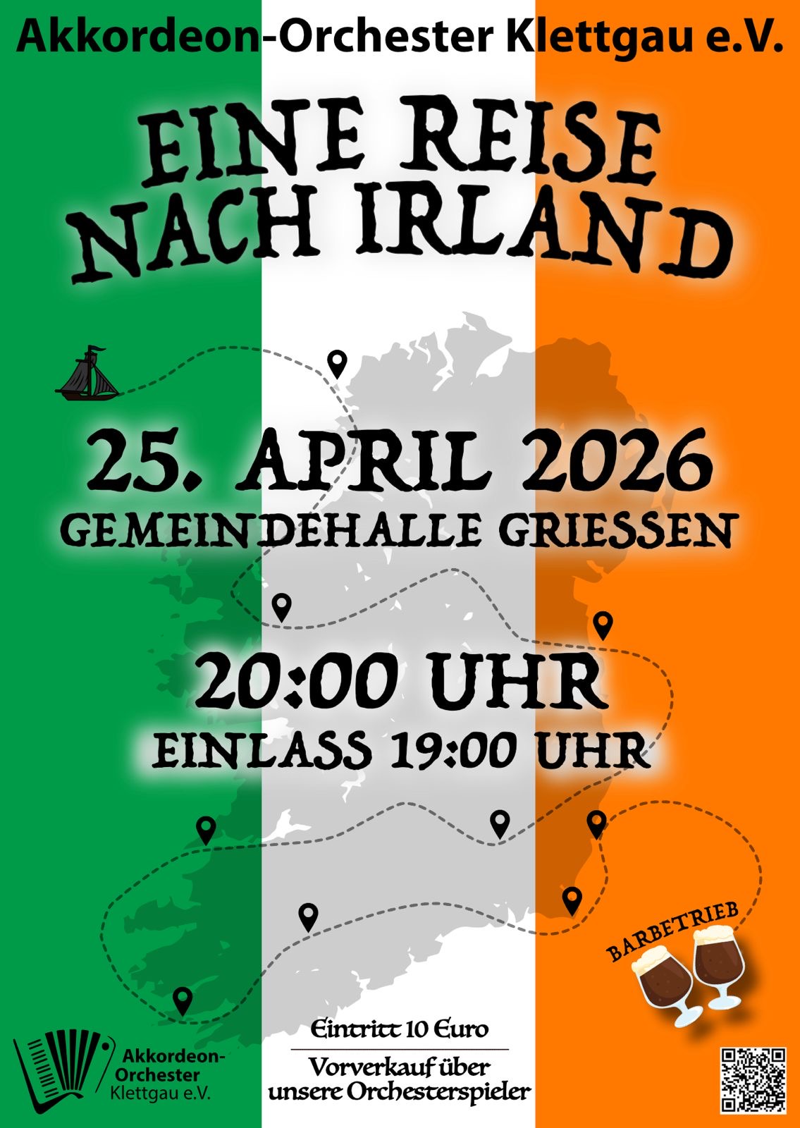Unter musikalischer Leitung von Rolf Hummel startet unsere Reise auf dem Festland, bevor wir mit Stücken von Santiano auf die Insel übersetzen. Unsere Rundreise in Irland wird begleitet mit Stücken wie Irish Castle oder auch Lord of the dance. Gehen Sie mit uns auf die Reise - wir freuen uns auf Reisebegleitung!
